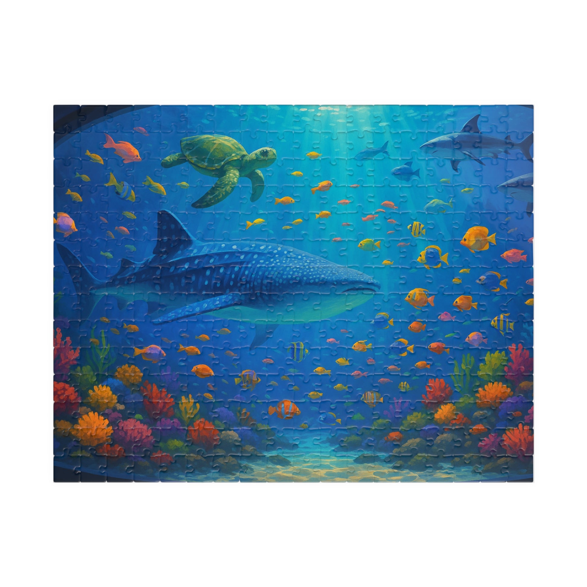 Dive into a shimmering underwater world with this beautifully printed puzzle. Each piece reveals layers of color — from deep ocean blues to bright coral and darting fish — creating a calming, immersive experience as the scene comes together. The glossy laminated finish makes the artwork pop while protecting the surface through multiple builds. Compact box packaging keeps everything tidy and the printed lid previews the finished image so you can jump straight into the swim. Whether you’re settling in for an evening of quiet focus or sharing a relaxed puzzle night, this puzzle brings the soft hush and slow wonder of the sea to your table.